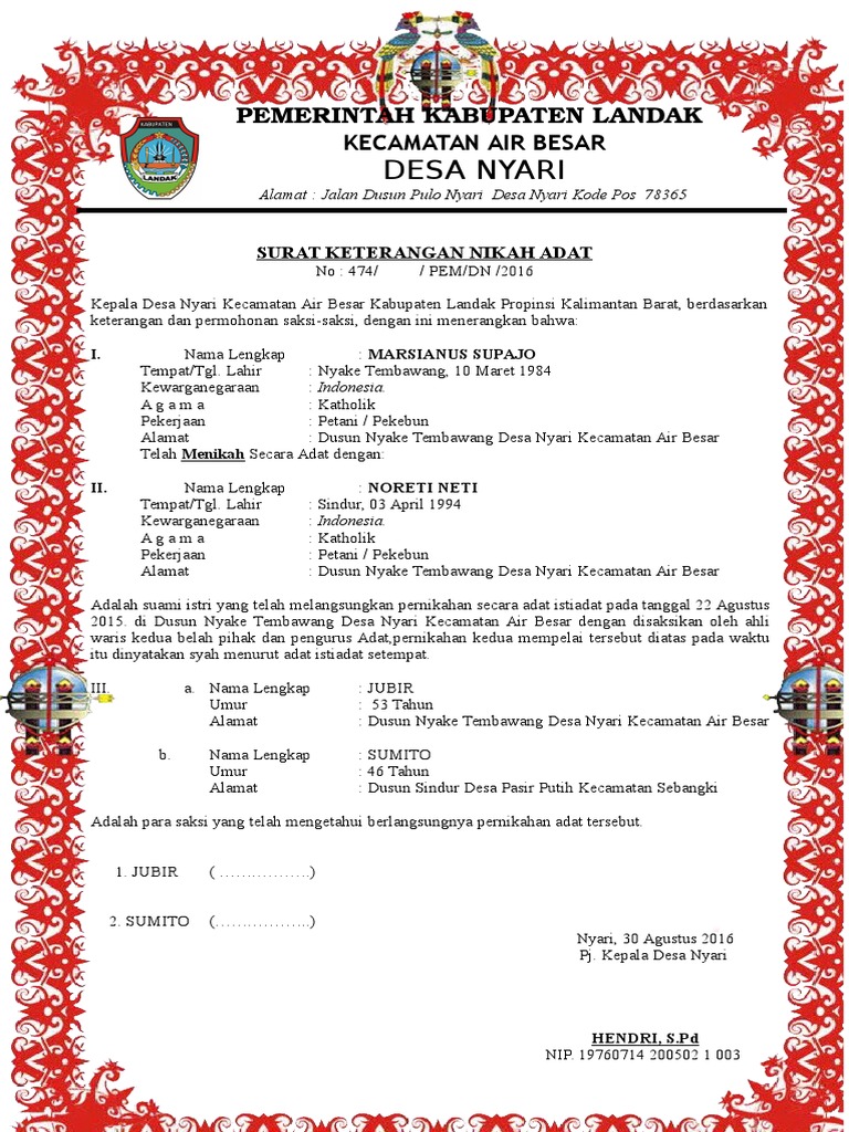 Contoh Surat Nikah Adat Dayak Kalimantan Barat / 17 Contoh Surat Nikah Adat / Kontraksi sunting penyingkatan untuk memendekkan kata (mengurangi jumlah suku kata).